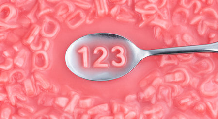 Close-up of a spoon with the word 123 rendering