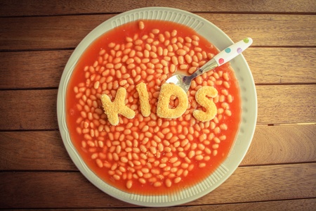 Kids meal - baked beens with breaded letters spelling KIDS