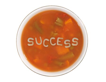 A bowl of alphabet soup with the word success in the middle