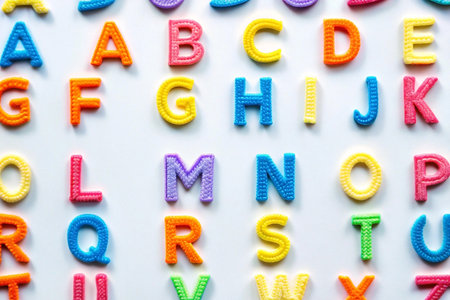 A vibrant collection of colorful alphabet letters scattered on a surface, ideal for educational activities, creative arts, and playful learning environments.