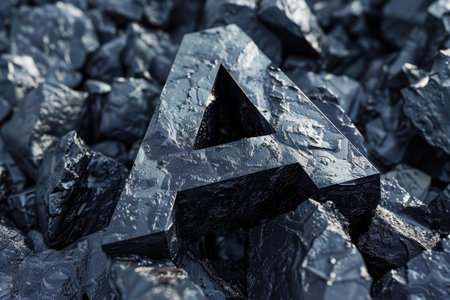A large A is carved into a pile of rocks. Concept of strength and permanence, as the letter stands out against the rough, solid background. The contrast between the smooth, polished letter