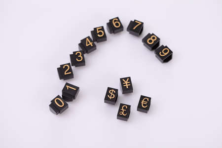 Mathematics background made with solid numbers on a board. Isolated on yellow