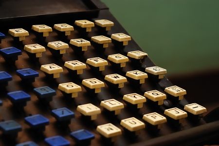 A solid background of numbers on the plastic buttons of an outdated calculator. Texture of numbers. Numerology and numbers. Abstract background.