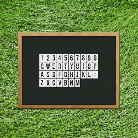 Frame for text. black letters of the English alphabet. isolated blue background.