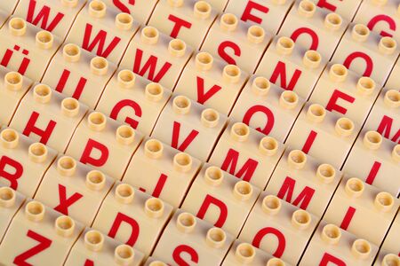 Mixed solid letters pile closeup photo. Education background concept