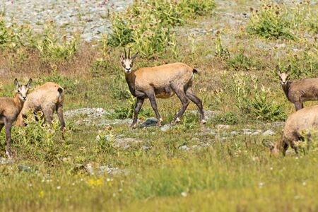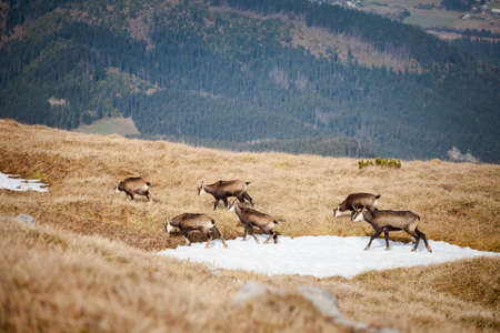 Group of mountain chamois inTatry mountains, Czerwone Wierchy, Cervene vrchy
