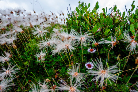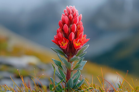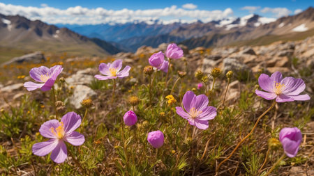 Wildflower with vivid colors blooming in remote alpine meadow closeup photo