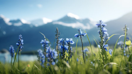Blue flowers on a field in the mountains