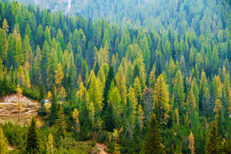 Mountain landscape with fir trees in autumn, Dolomites, Italy