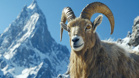 Alpine ibex on a background of mountains.