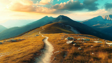 Hiking trail in the mountains at sunset, Tatra Mountains, Poland