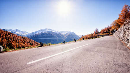 Autumnal alpine road in the swiss alps.