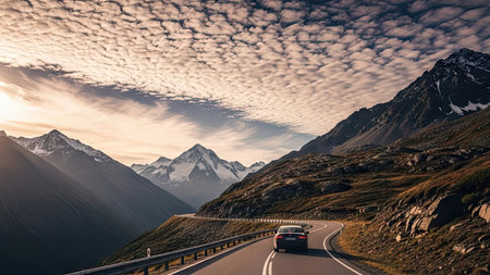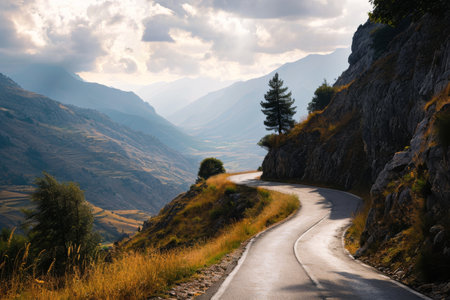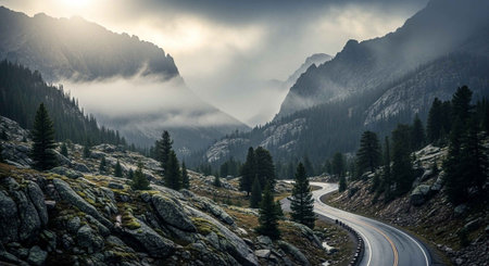 Scenic mountain highway, panoramic vista, travel inspiration. generated by ai