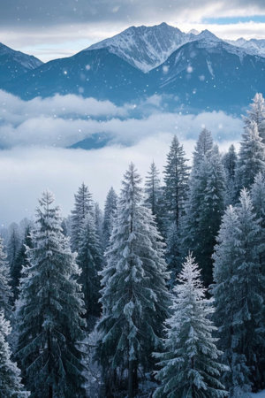 Snow covered forests and mountain landscapes