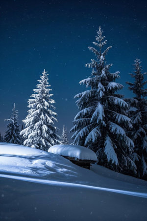 Snowy forest under the starry sky