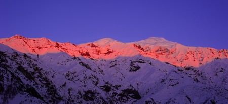 Violet sunset in the mountains