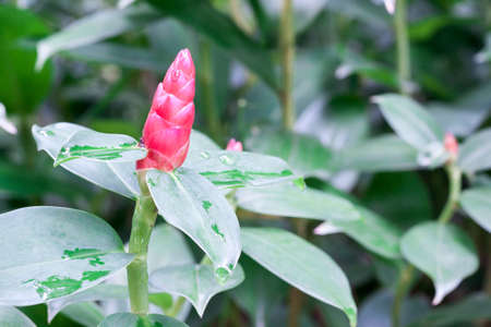Indian Head Ginger or Red flower of Wild Ginger or Cheilocostus Speciosus, focus selective.