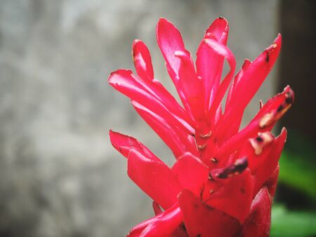 A beautiful tropical red ginger flower. Red Ginger (Zingiber officinale Roscoe Scientific name:), flowering red, beautiful in the garden.