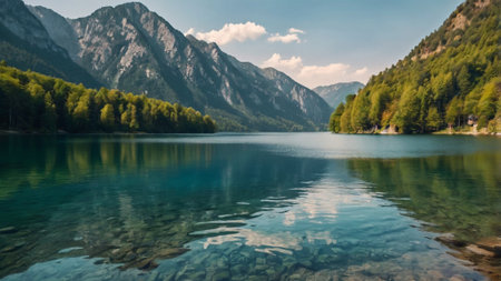 Beautiful alpine lake with mountains in the background, Austria.