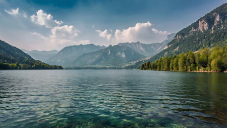 Panoramic view of a beautiful alpine lake in Austria.