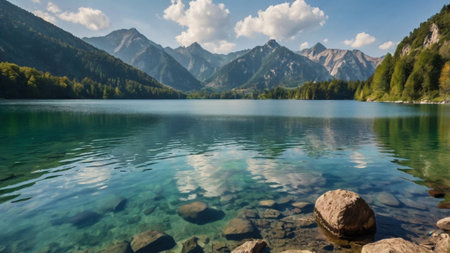 clean and transparent lake in the mountains