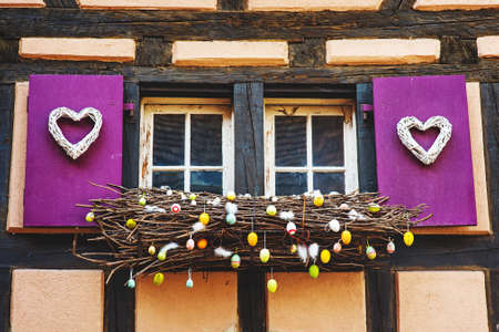 Bergheim (Bas-Rhin, Alsace, France) - Exterior of old half-timbered house with flowers