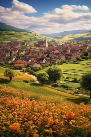 A peaceful village in the countryside, a poetic dwelling in the green fields