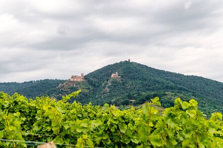 View of Riquewihr village with vineyard on a foreground. Alsace Wine Route, France
