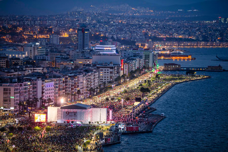 29 October 2019, Izmir Turkey, Celebrations and torch light procession on izmir konak on 29 October for the republic day;