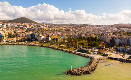 Landscape of the Coast of Izmir and Aegean Sea seen from the old elevator of Izmir with copy space