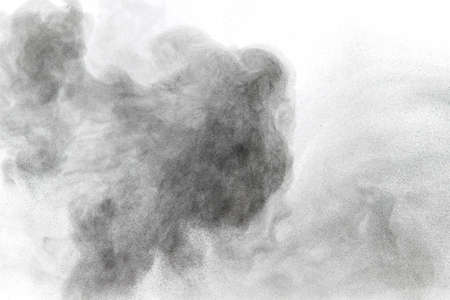 particles of charcoal on white background,abstract powder splatted on white background,Freeze motion of black powder exploding or throwing black powder.