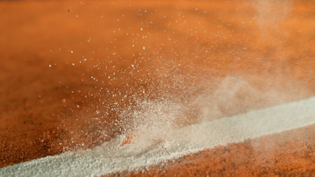 Freeze Motion Detail Shot of Tennis Ball Hitting a Clay Court