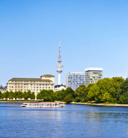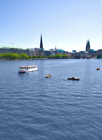 Passenger ship on lake Alster, Hamburg, Germany on a bright day