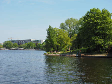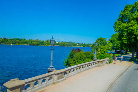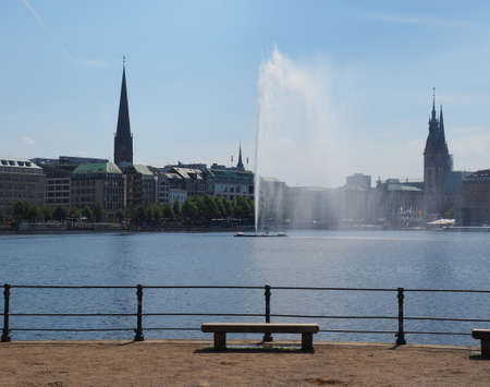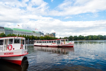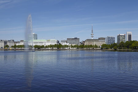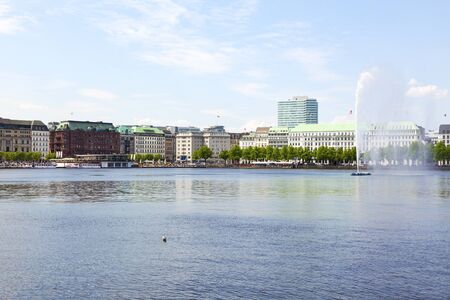HAMBURG, GERMANY - JUNE 08, 2015: Nice view of the east part of Binnenalster lake or interior lake in a sunny day,
