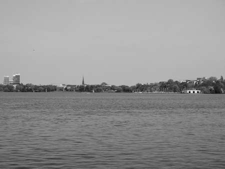 Aussenalster (meaning Outer Alster lake) in Hamburg, Germany in black and white