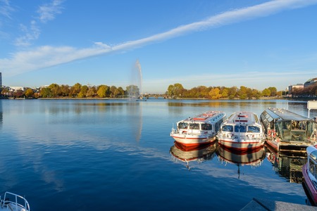 view across the Alster sea at Hamburg with boats and ship