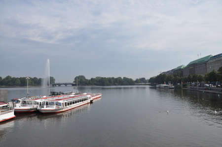 Alster Lake in Hamburg in the central historical district Roterbaum of Hamburg, Germany.June 2010.