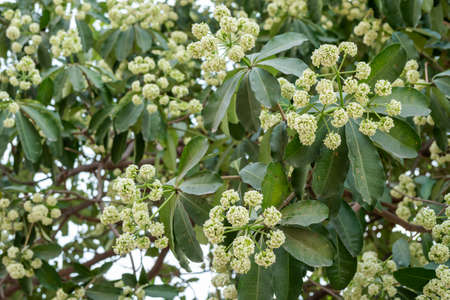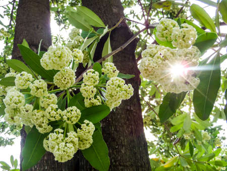 White flower of Devil tree ( Alstonia scholaris ), blooming pungent flowers on tree in the garden, Thailand.
