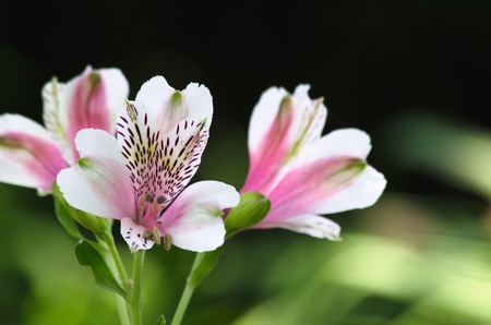 Striking pink and white Alstroemeria flowers blooming in the garden