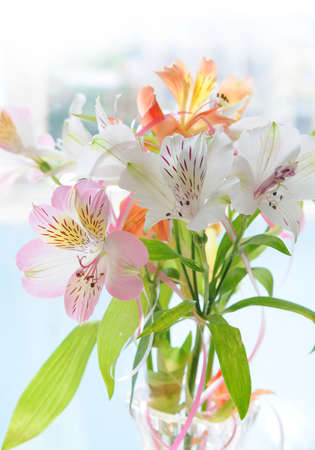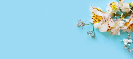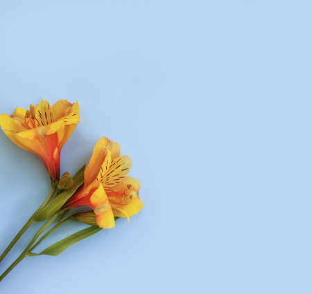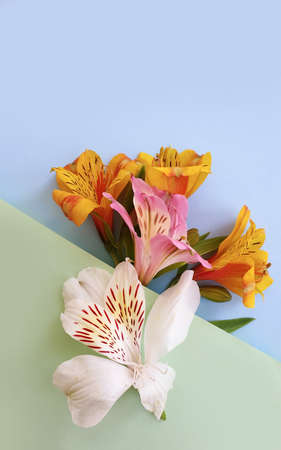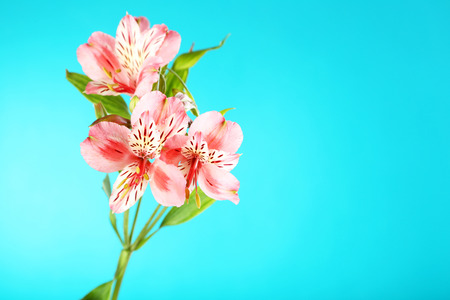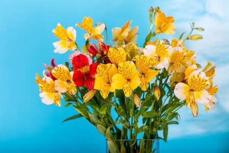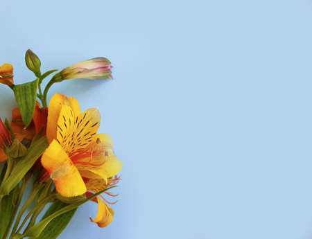 Beautiful alstroemeria flowers on a blue background