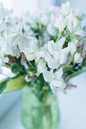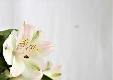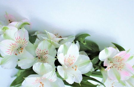 White Alstroemeria flowers on white background, closeup of photo