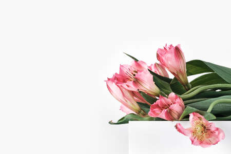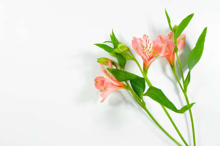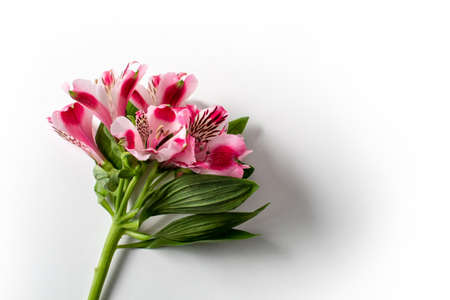 A Beautiful Bouquet with flowers astromeria Pink flowers with copy Space on white background