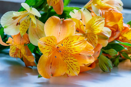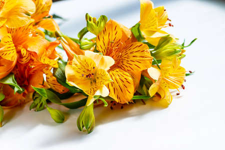 View of yellow flowers Lily of the Incas close up
