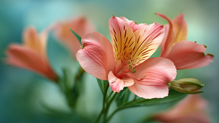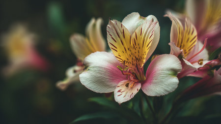 Delicate Alstroemeria Blossom Displaying Intricate Patterns and Soft Pastel Colors
