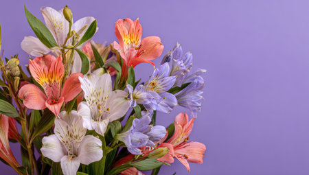Bouquet of alstroemeria flowers on a purple background