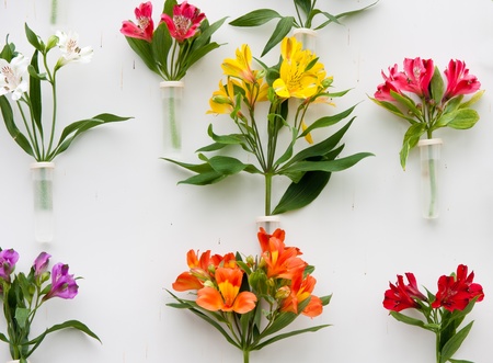 Decoration of beautiful flowers against a white wall