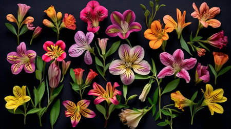 Alstroemeria flowers on a black background, close-up