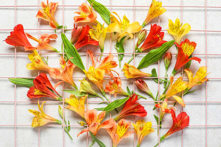 Grid with alstroemeria flowers on light background, closeup