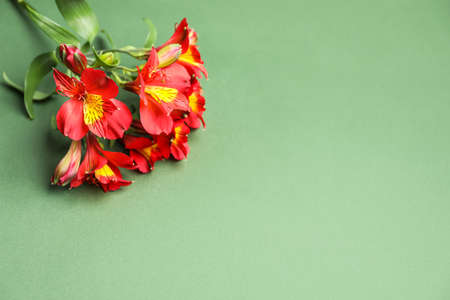 Red alstroemeria flowers on color background