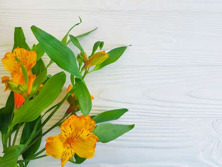 alstroemeria flowers on wooden background frame